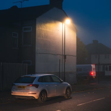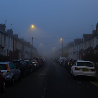 A series of Photographs captured early morning in the fog prior to & after sunrise. The dense fog softens the scenery. The rapid change in light as the sun rises and night falls away creates unique frames with different shades of colour gradients. Each moment feels momentary and unrepeatable. Streetlights, trees, and distant silhouettes fade into the mist, creating a quiet sense of isolation woven through the images. More to come.